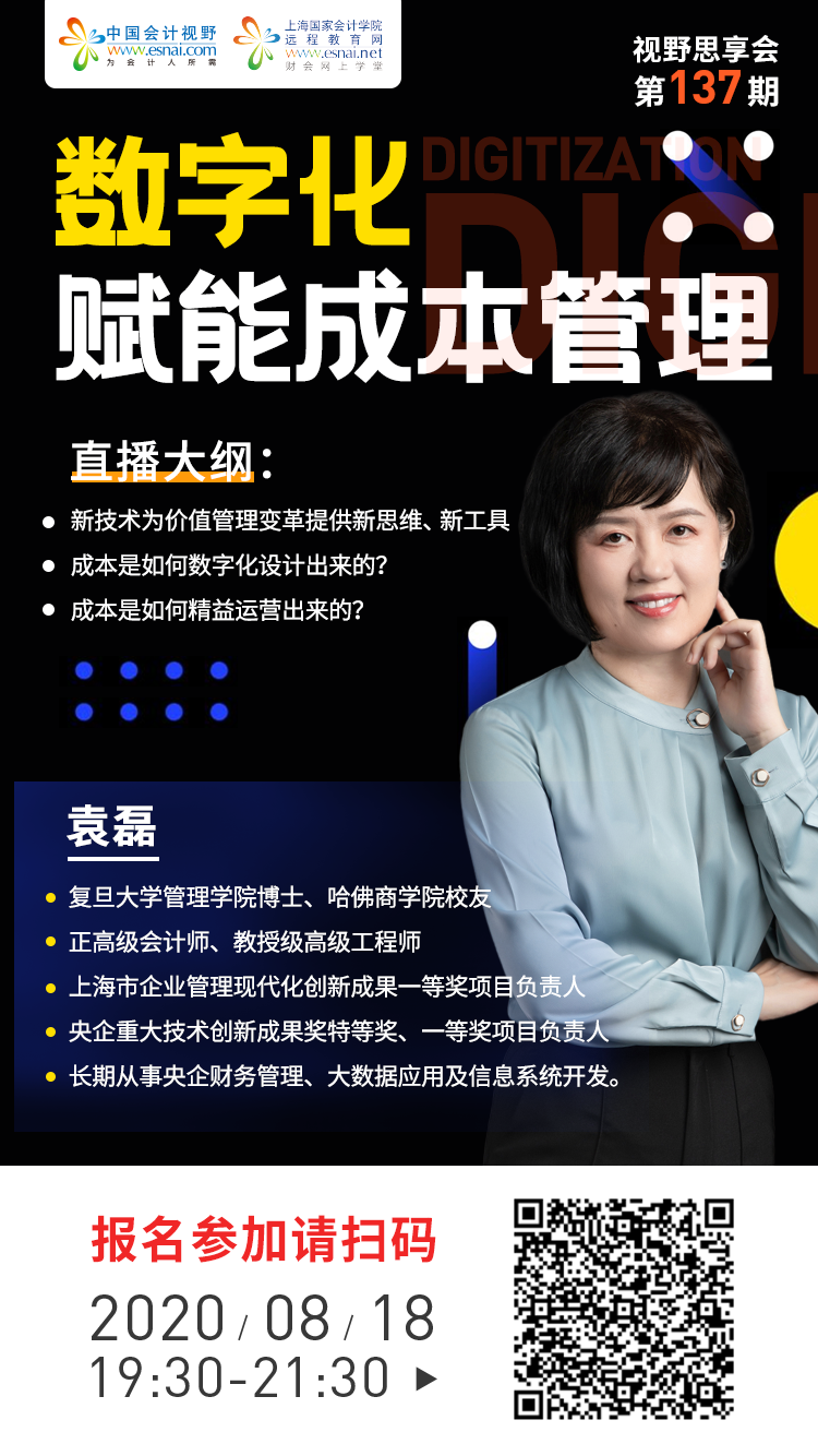 本帖最后由 无忧草 于 2020-8-12 10:08 编辑 课程安排 直播主题:数字化赋能成本管理 直播日期:8月18日 直播时间:19:30-21:30 直播嘉宾:袁 ...